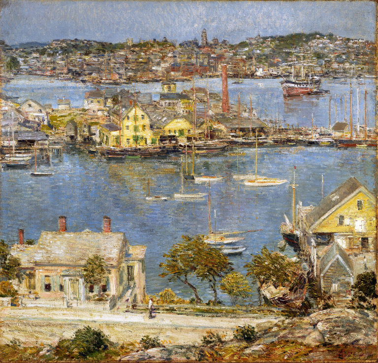 Gloucester Harbor, c. 1899, by Childe Hassam, oil on canvas, 25 x 26 1/8 in. Courtesy Norton Museum of Art, West Palm Beach, FL, Bequest of R. H. Norton, 53.77