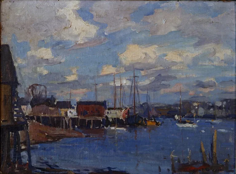 Town Landing, 1948, by Emile A. Gruppé, oil on canvas, 29 x 38 in. Private collection.
