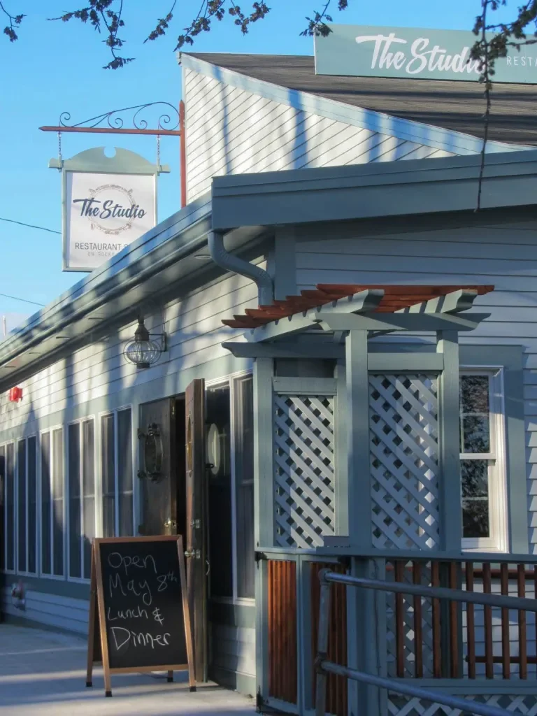 DIRECTIONS: From trail site #8 it is only a one-minute walk along the harbor to the Studio Restaurant, the building that once housed the Breckenridge School of Art.