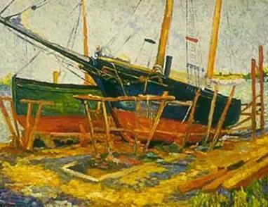 Boat at Harbor, oil on canvas, painted in 1928 by African- American impressionist Allan Randall Freelon, Sr. (1895- 1960) while he was enrolled at the Breckenridge School of Art, shows the student’s interpretation of the iconic imagery at hand. Private collection.